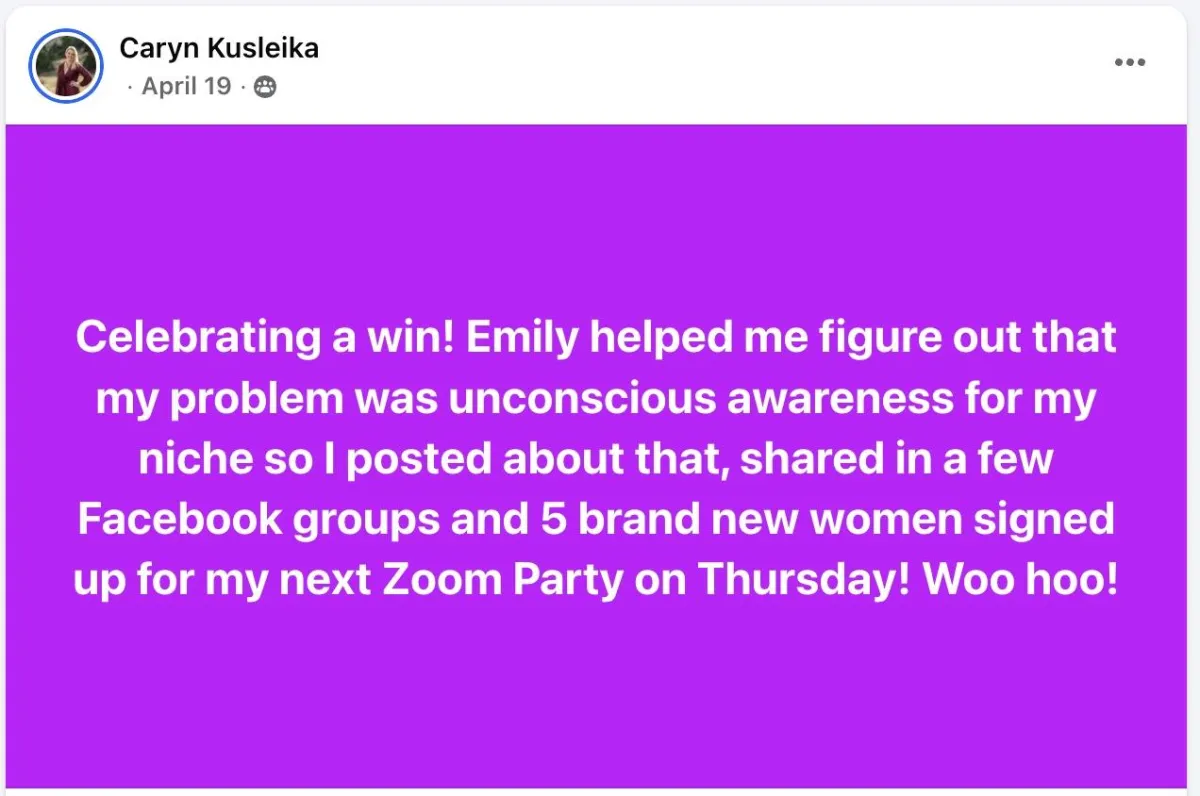 Do not worry! Recordings of the general session will be available in the Facebook group until the Sunday following the ending of the challenge at midnight. Because we dive deep into the individual questions of each person present, VIP/Diamond sessions are not recorded.